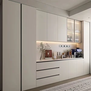 Our high-gloss white lacquer series with integrated islands represents the pinnacle of localized luxury. Designed for open-plan living common in Australia and North America, these corner units provide a smooth transition from the kitchen to the living area. The use of aluminum structural reinforcement ensures that even the largest corner units remain stable over decades of use.